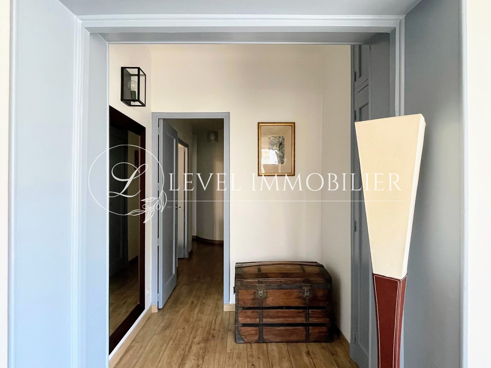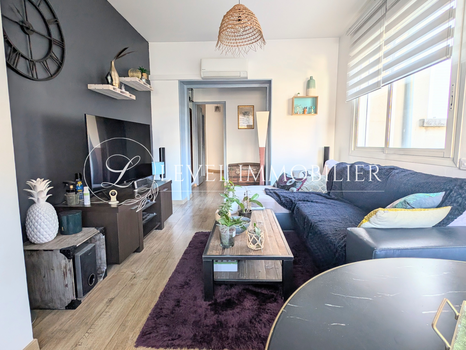 Ce T3/4 bénéficie de nombreux atouts : double vitrage, climatisation, électricité entièrement refaite, cave, magnifique suite parentale, deux dressing et en plus une grande terrasse.
