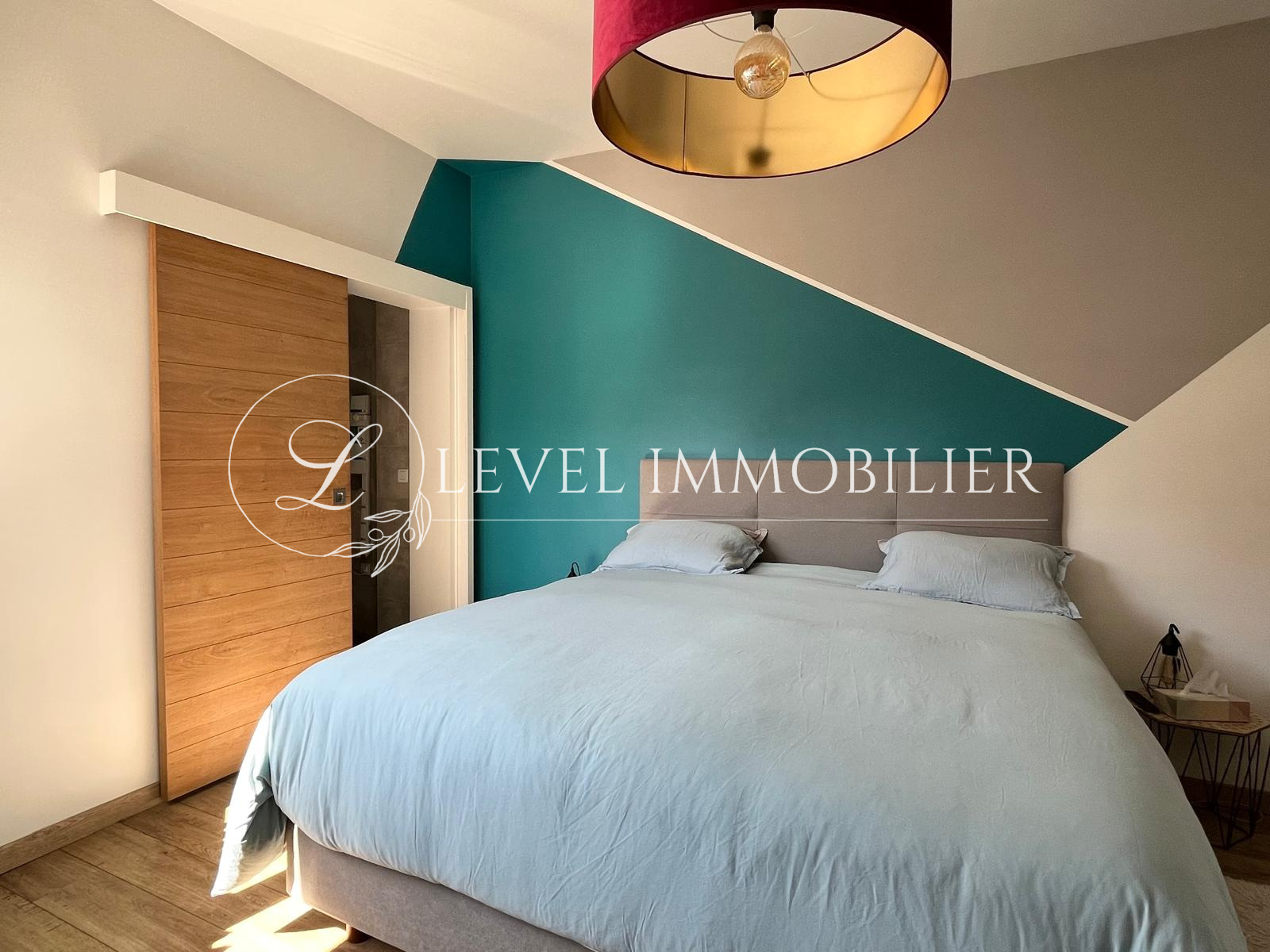 L'espace nuit n'est pas en reste avec une salle de bains avec douche et baignoire, d'une grande chambre de 13 m² donnant sur un petit patio, d'une suite parentale avec dressing et salle d'eau et enfin un petit bureau.