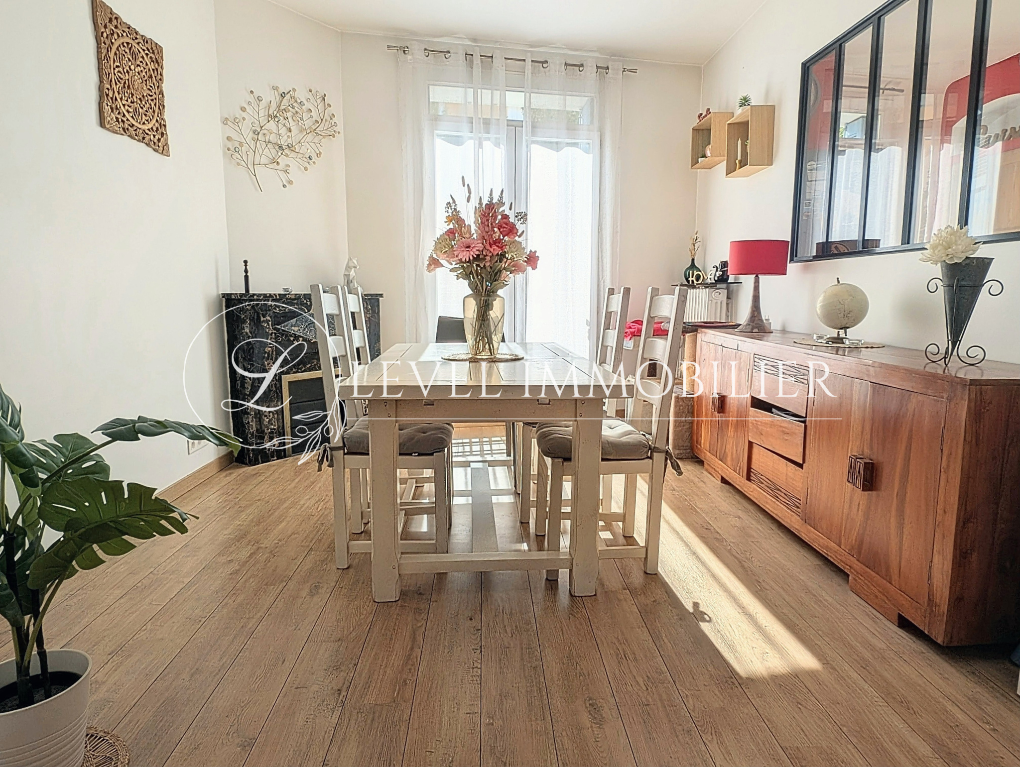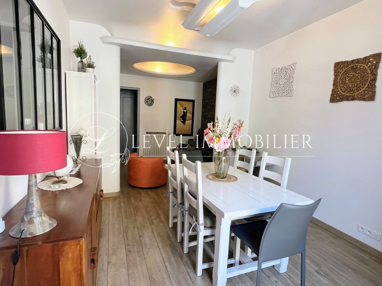 Les grands volumes de ce bien permettent de profiter de plusieurs espaces de vie : une belle cuisine fonctionnelle, une grande salle à manger mais également un salon cosy donnant sur l'extérieur.